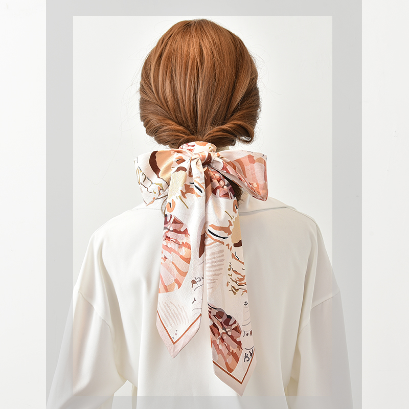 Original design narrow long strip small silk scarf female spring and autumn all-match French streamer headband Korean small scarf tied bag