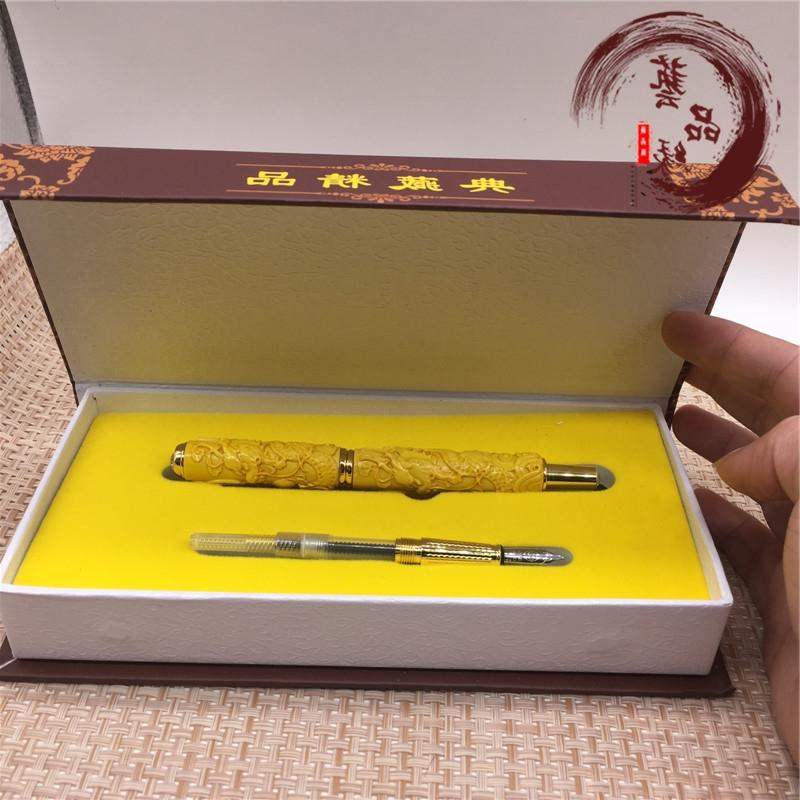 Authentic yellow Yangwood engraving water-based pen fountain pen students practice character signature and gift giving two used pens red wood wood business
