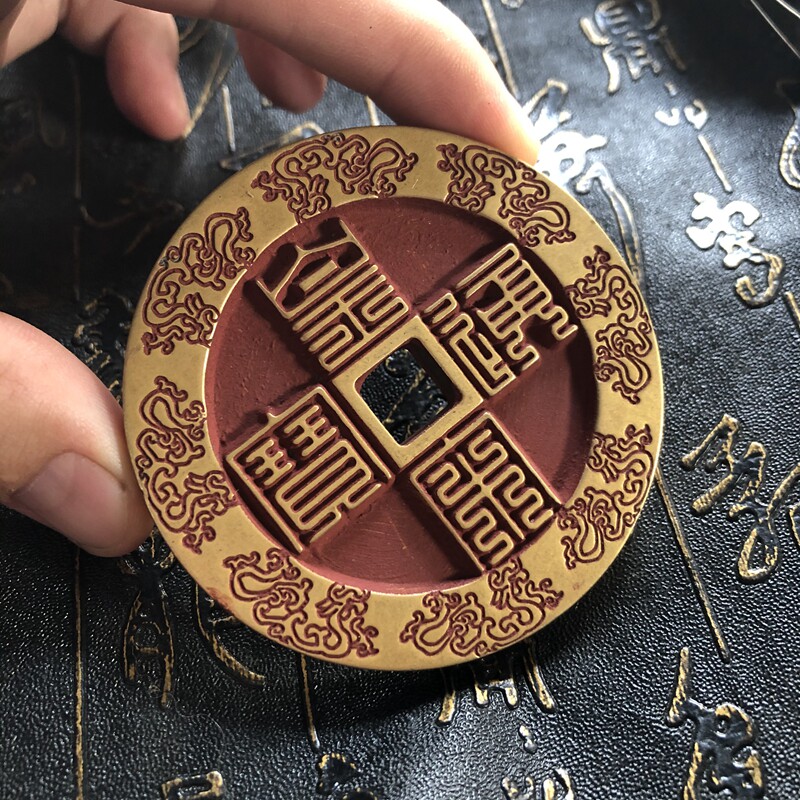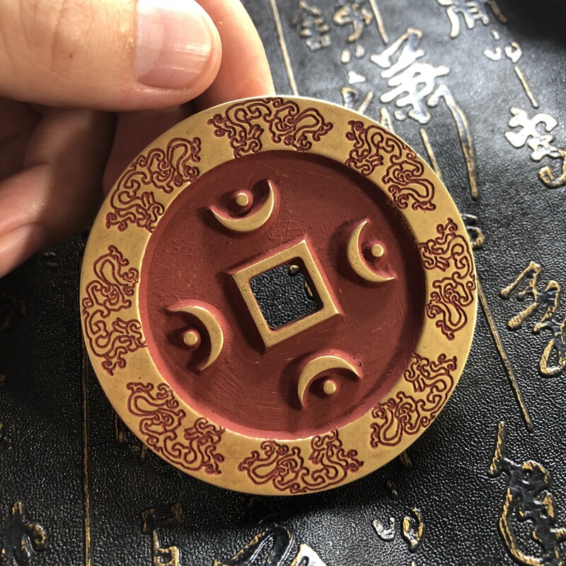 Pure copper Emperor Song Tongbao Nine Stacks Of Seals Back Sun Moon Book Threshold Cinnabar Copper Coins Modern Crafts Carved Ancient Coins