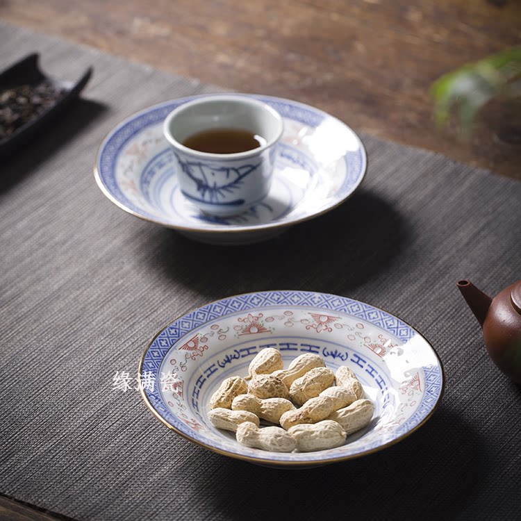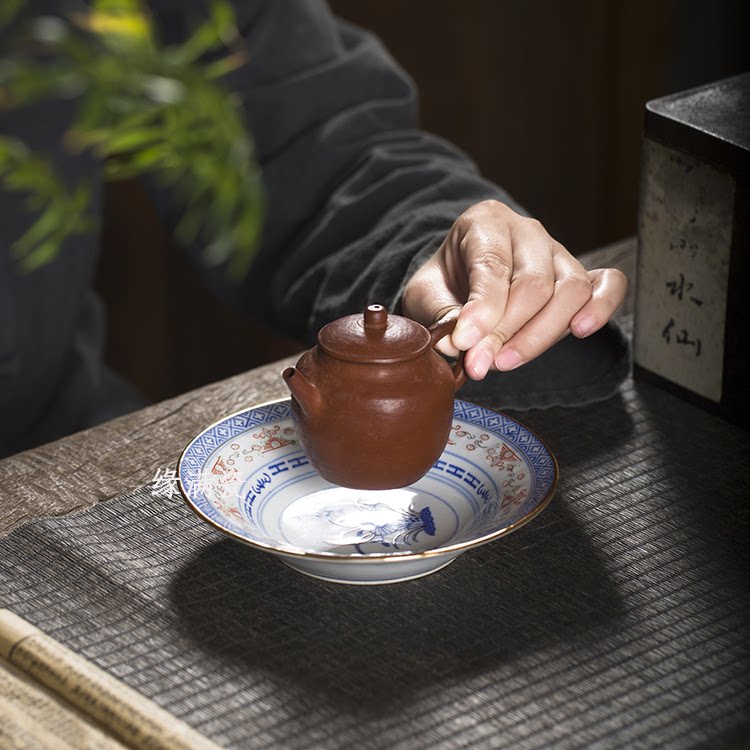 Jingdezhen Ceramic Tea Set 70s Bright Porcelain Factory Plus Color Sketching Golden Green Flower with six-inch soup pan nourishing pot tray