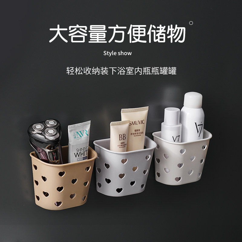 Small number student Dormitory Plastic storage basket Makeup Room Drain Containing layer Shelf Perforated Bathroom Wall-mounted Small basket