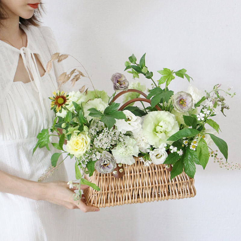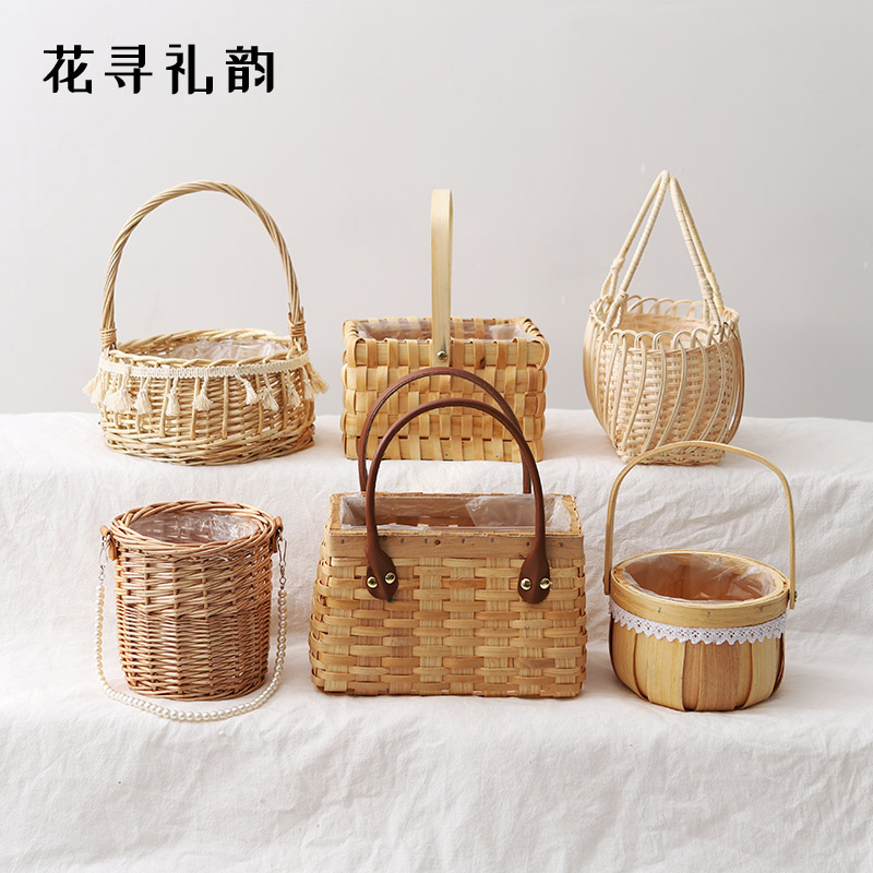 Tassel flower basket Large Tassel flower basket Small princess lace handle Large princess lace handle Small watermelon ellipse Large watermelon ellipse Small bamboo rectangular leather hand-held bamboo pumpkin round