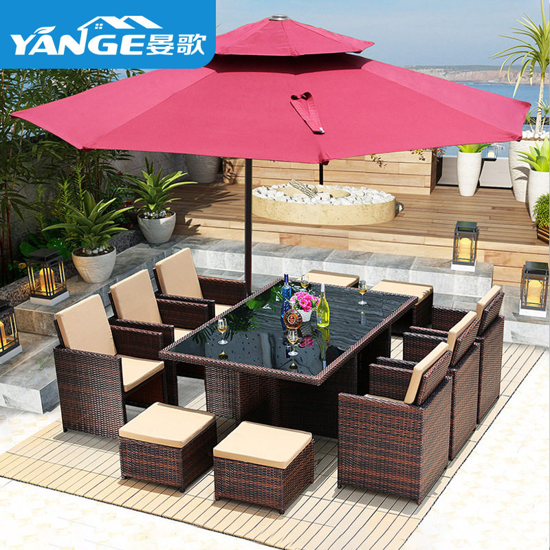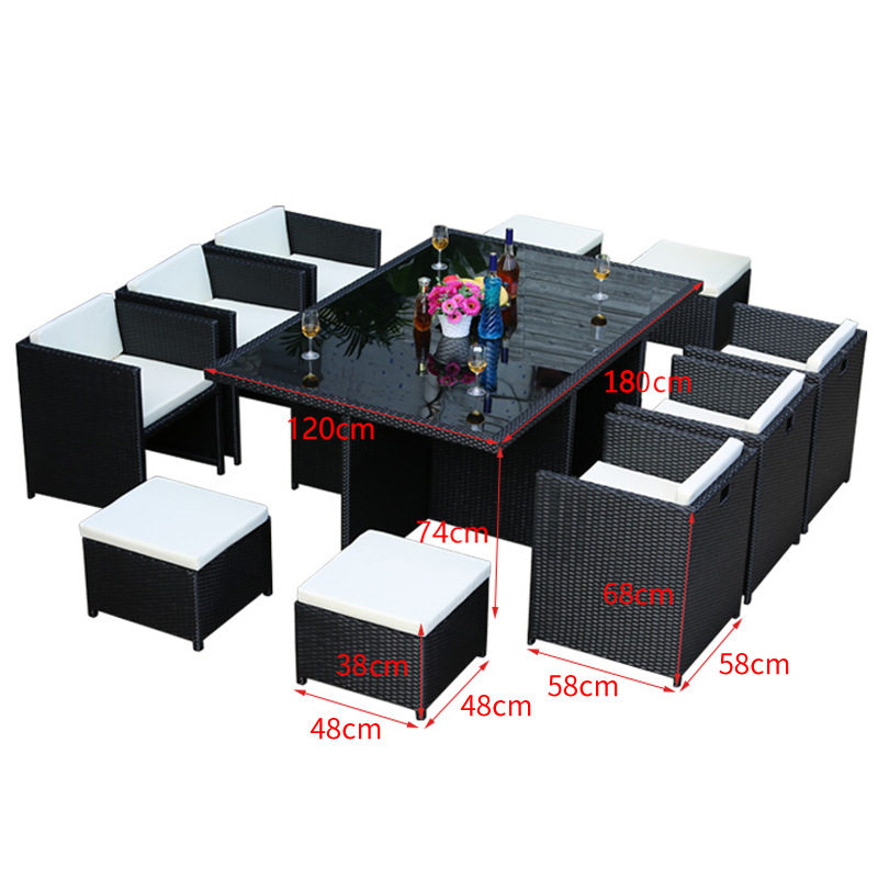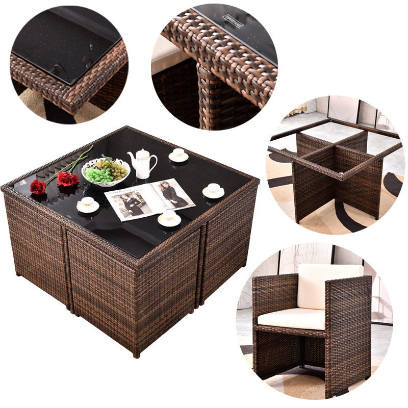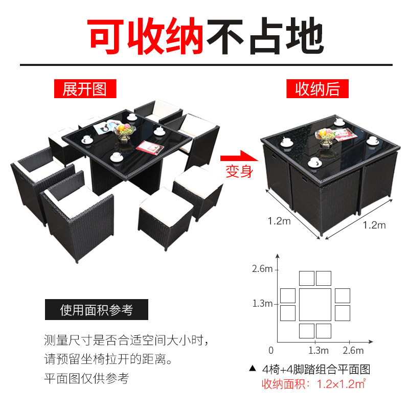 One table, four chairs (flat), one table, four chairs, four pedals (flat), one table, six chairs, four pedals (flat), one table, six chairs, four pedals (flat) one table, four chairs (high leaning), one table, four chairs, four pedals (high