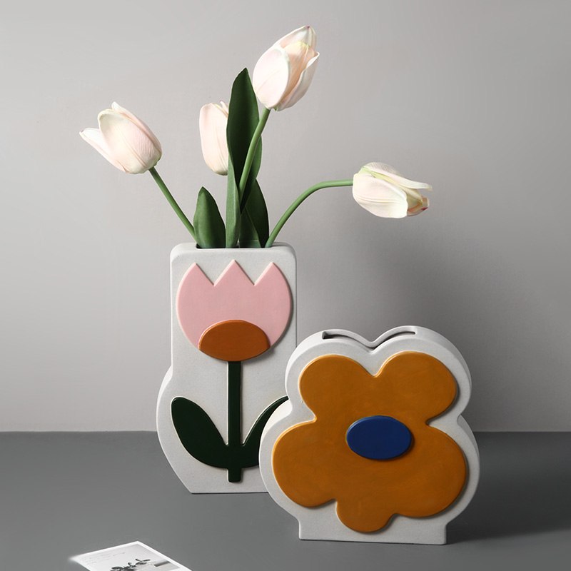 Nordic Creative Ceramic Vase Household Flower Fittings Living Room Limit Accessories Desktop Art Dry Flower Decoration