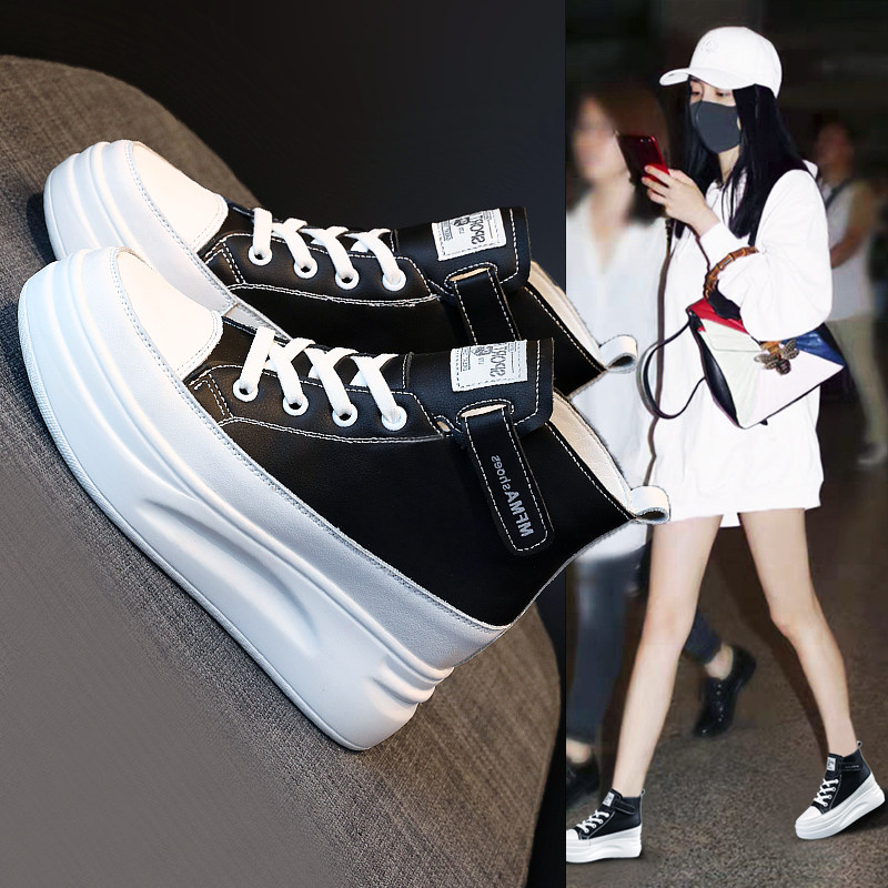 The new thick sole leather 8cm high - gang casual single shoes in spring 2022