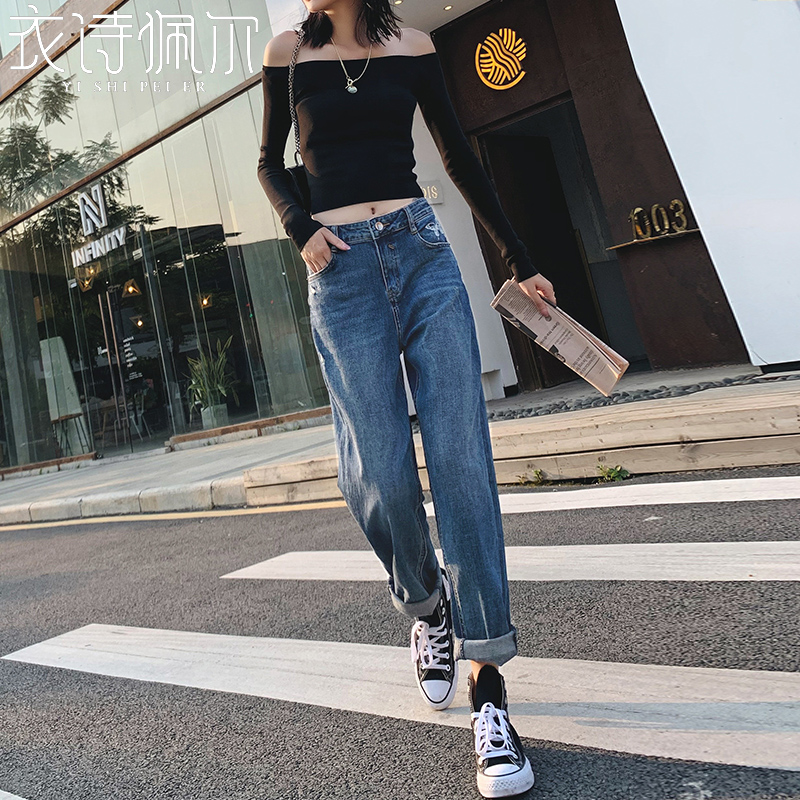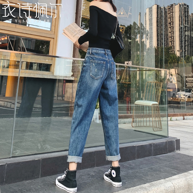 High waist jeans female embroidered straight tube loose daddy pants 2023 spring and summer new skinny Halene radish pants