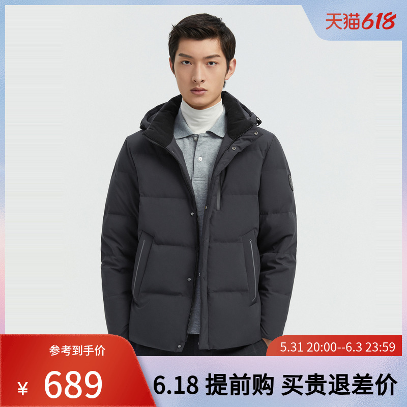 Bourgendon down clothes Men's short section 2021 new detachable hat Classic 100 hitch casual warm winter jacket