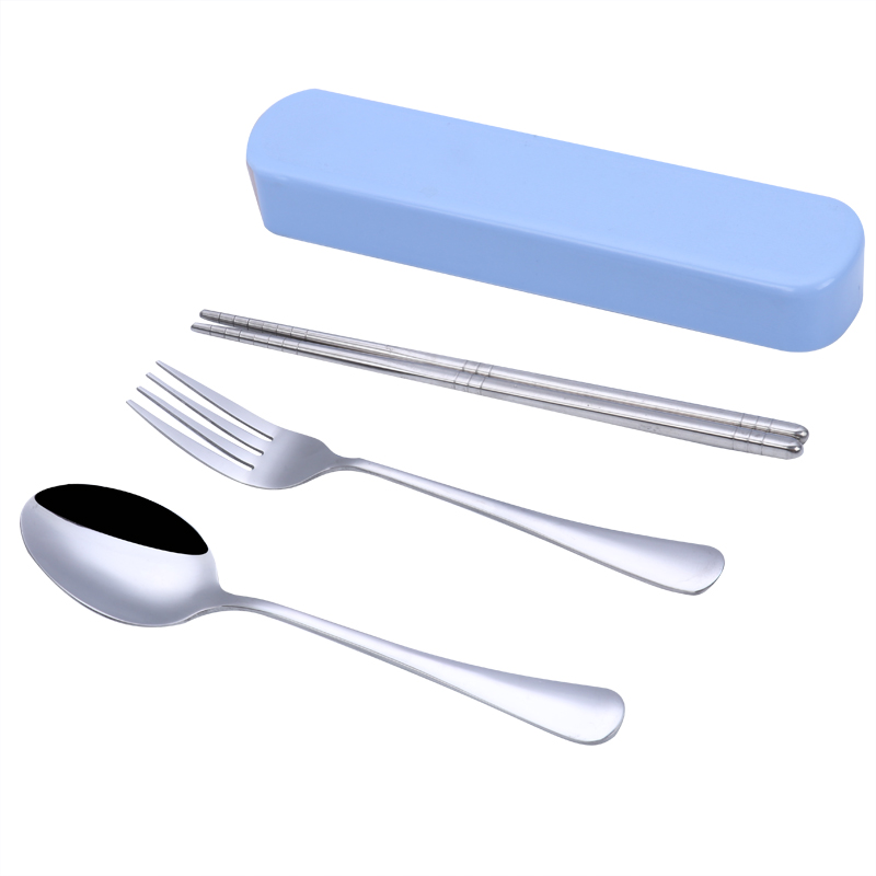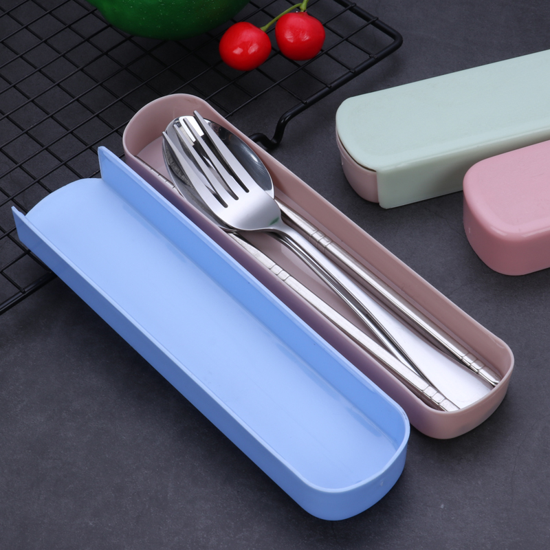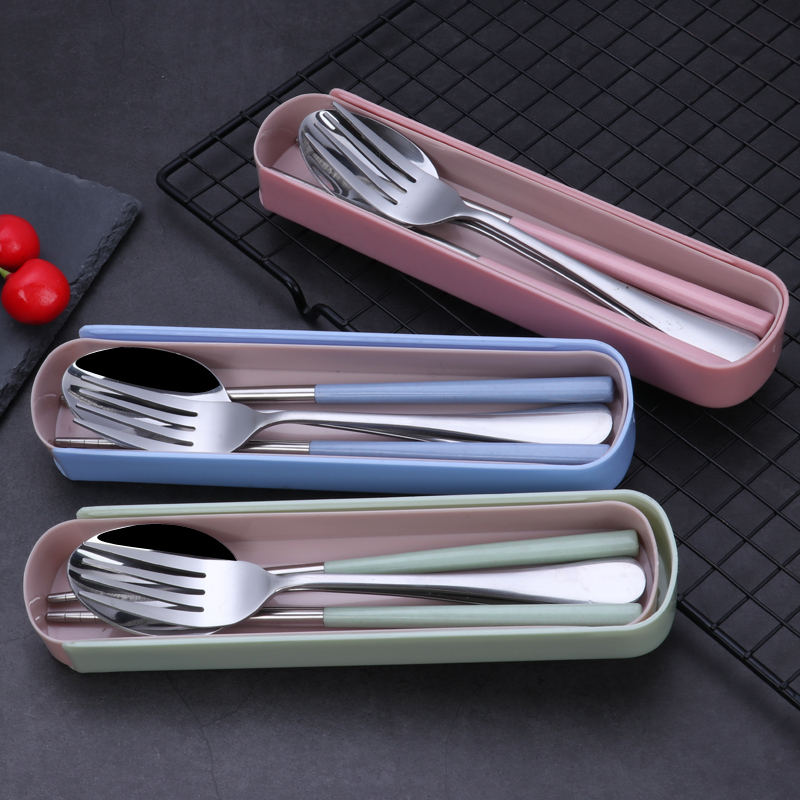 Japanese stainless steel portable tableware student chopsticks spoon fork storage box set gift custom logo