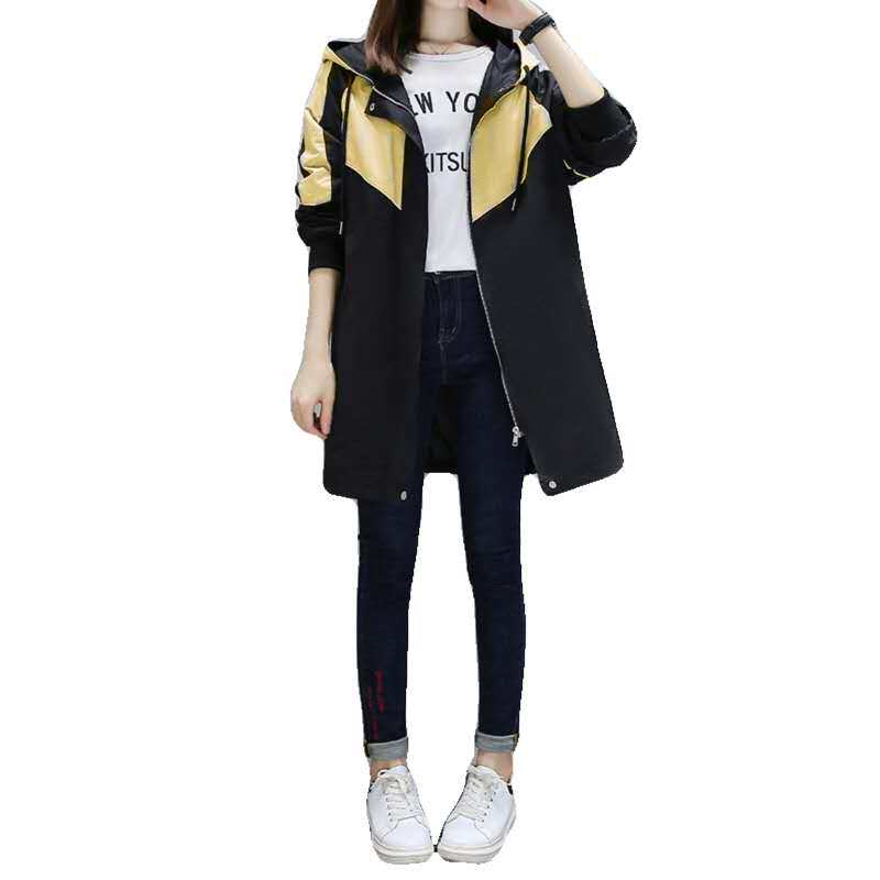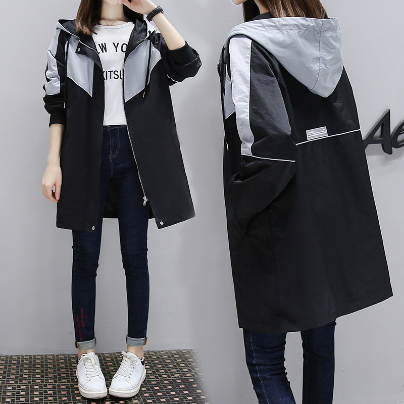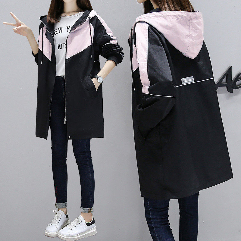 Mid-length baseball uniform windbreaker jacket female 2020 autumn new Korean version loose student hooded splicing top tide