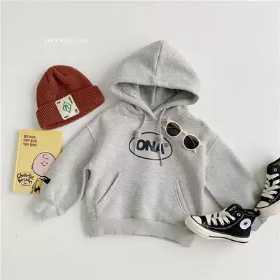Orange children's clothes children's clothes 2020 autumn and winter New Korean version plus velvet hooded letters foreign style loose girl top