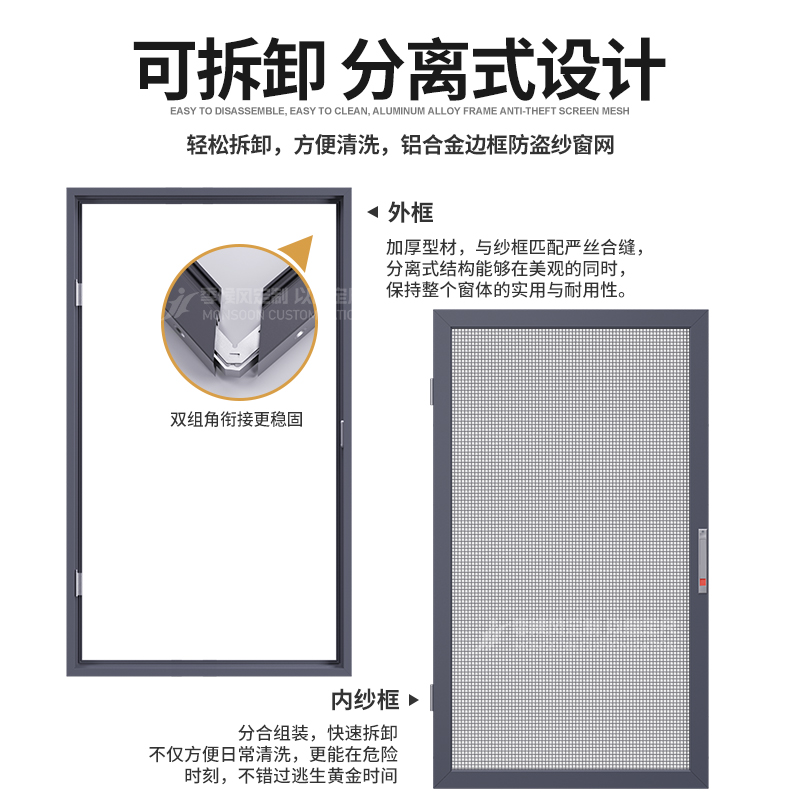Inner window screen mesh self-installed aluminum alloy high-permeability emery mesh screen window anti-mosquito inner inverted window anti-theft screen window