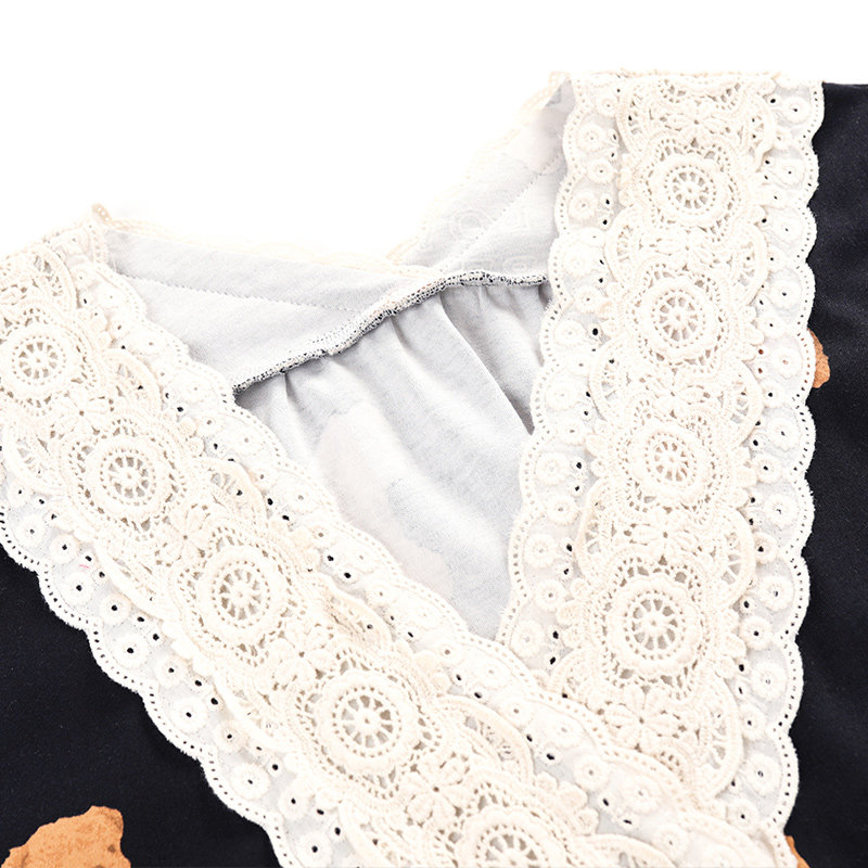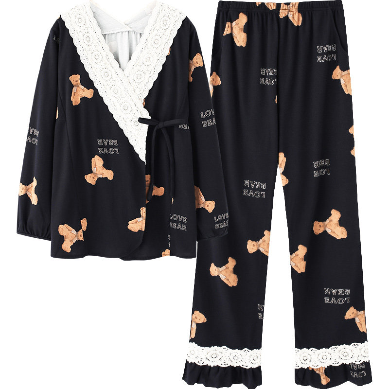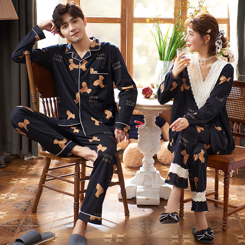 Lovers pyjamas women's spring and autumn long sleeves pure cotton linen Japanese and cute little bear men's home suits for autumn and winter