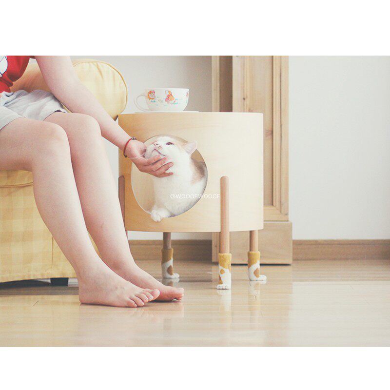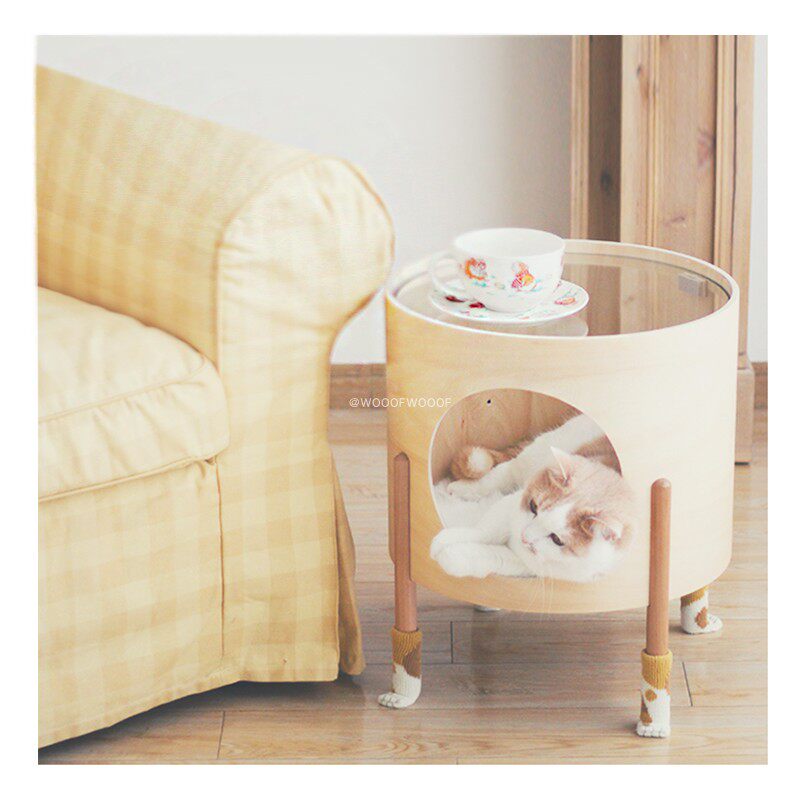 Tea table owl CatsCity Domestic original designer solid wood Cat Furniture with Hermetic Cat Bed Head Cabinet