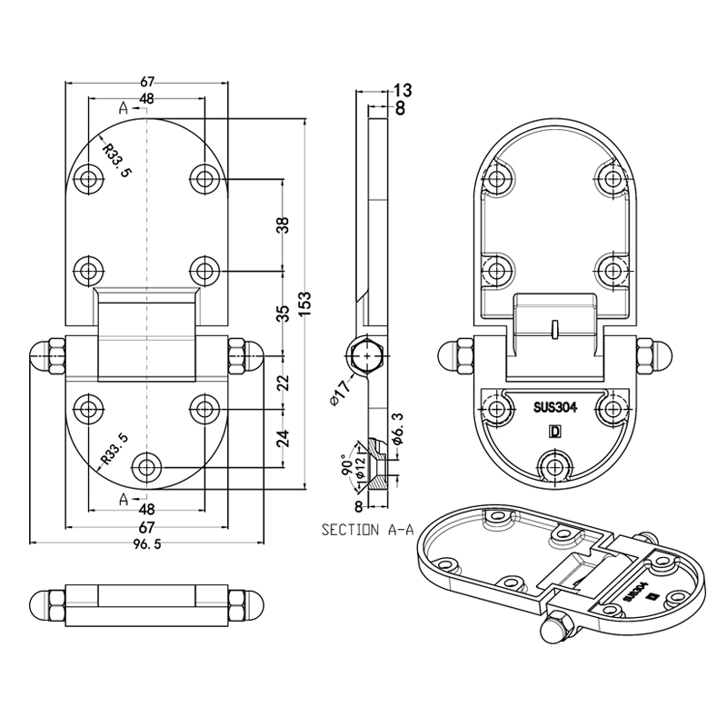 304 stainless steel hinge equipment Mechanical cabinet door connector HT070-2 car door round hinge hardware accessories