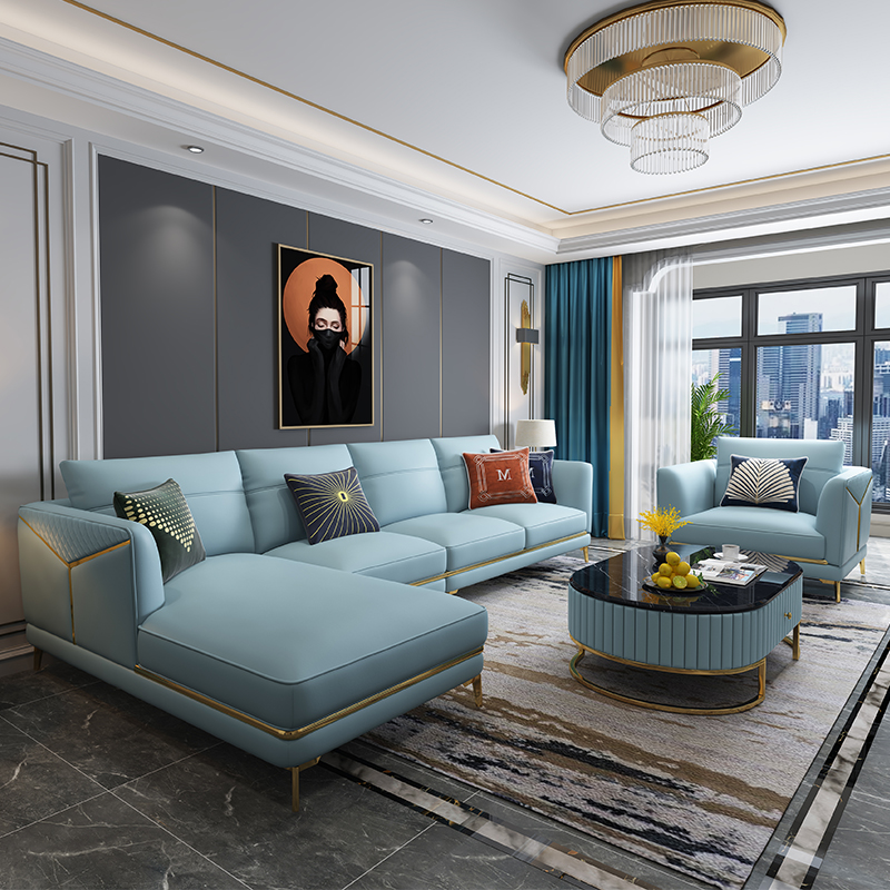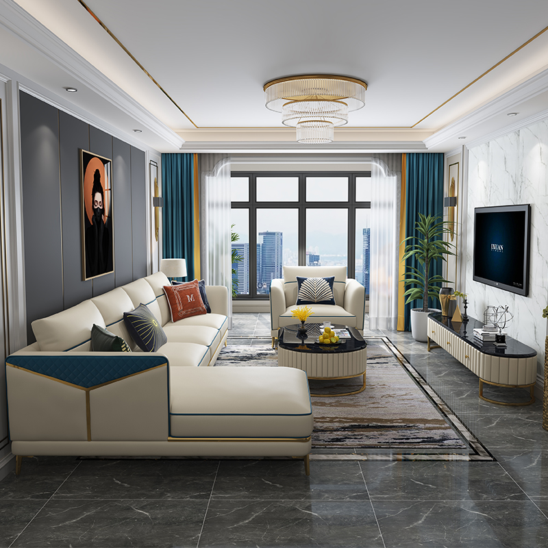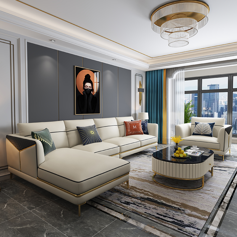 Light luxury post-modern leather sofa combination simple Hong Kong-style model room corner living room small apartment three-person outfit