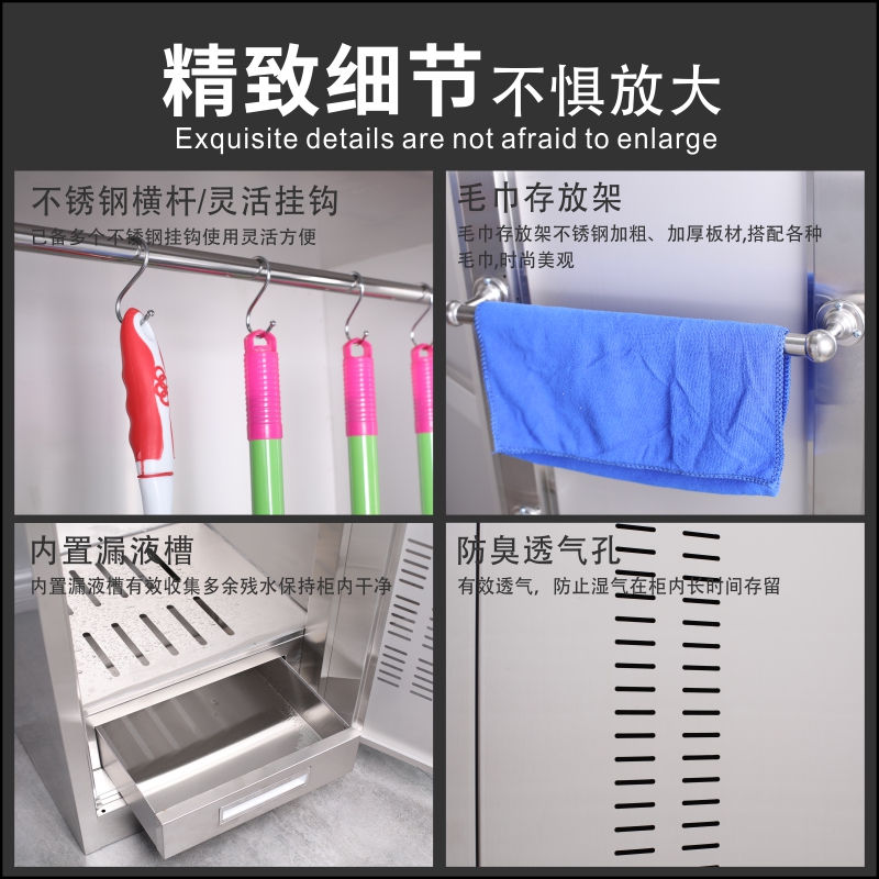 Rong Tenghui Stainless Steel Waterproof Sanitary Cleaning Cabinet Mop Cabinet 304 Rust-proof Single Door Double Door Containing Cabinet Miscellaneous Cabinet
