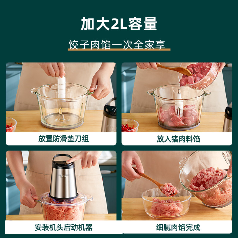 2L capacity (glass bowl)*1 set of knives 2L capacity (glass bowl)*2 sets of knives 2L capacity (stainless steel bowl)*1 set of knives 2L capacity (stainless steel bowl)*2 sets of knives large capacity
