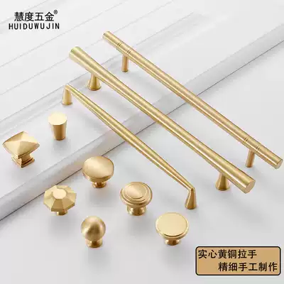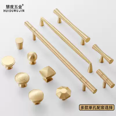 Modern light luxury pure copper cabinet door handle Nordic all copper gold single hole handle American brass integral cabinet door handle