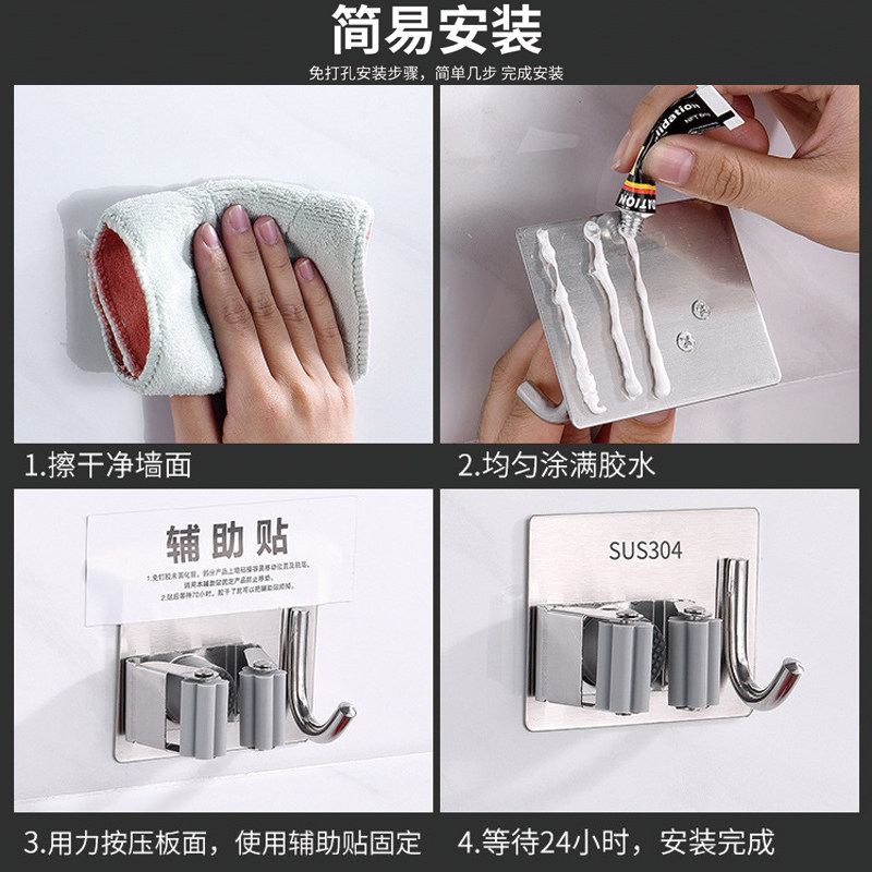 Hairs hook-free punching makeup room stainless steel sweep hanging wall to collect artificial artificial drag mop clamp