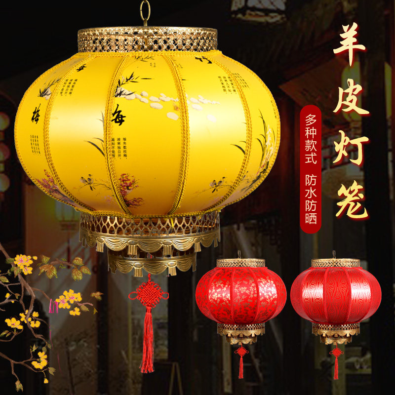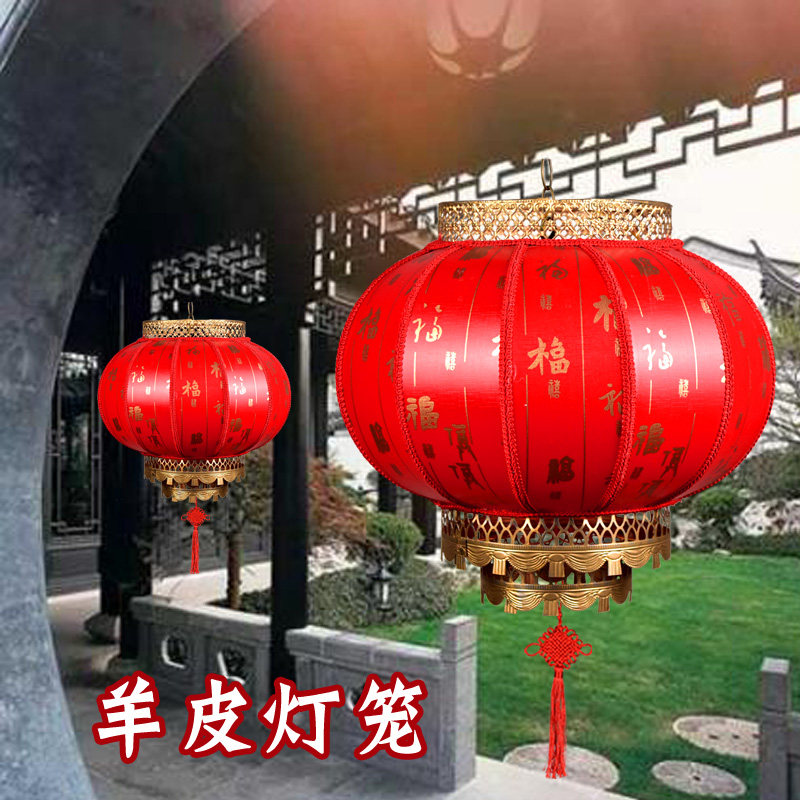 Round sheepskin lantern Outdoor waterproof balcony advertising red lantern New Year Teahouse hotel door decoration lantern