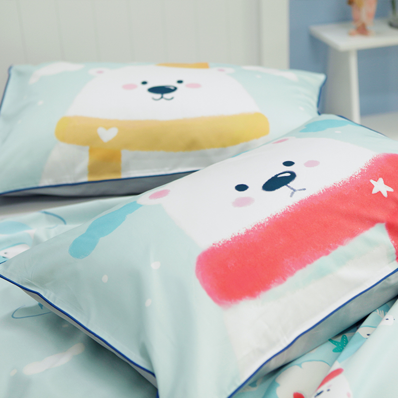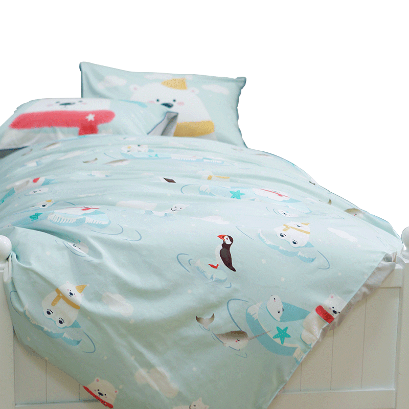 Blue Platinum Children Full Cotton Cartoon Four Pieces Mysterious Arctic Pure Cotton Boy Gonsatin Bed