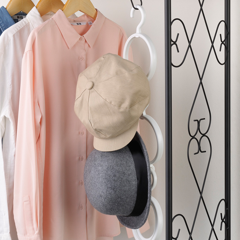 inomata Japan import hat containing layer rack scarf rack door rear free of punch to connect the folding shelf