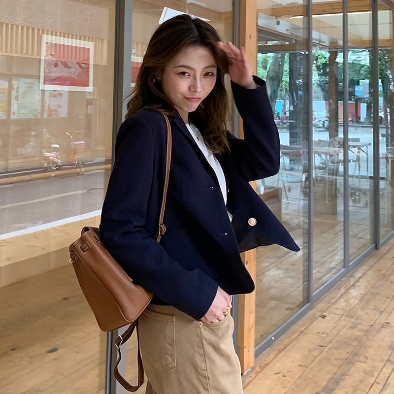 Xiao Xiaola original suit Korean version of the retro gold button temperament top design small casual small suit jacket women