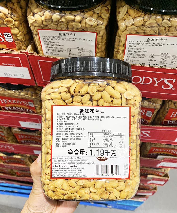 Shanghai Costco USA imported Hoodys Salted peanut kernels 1 19kg nut snacks packaged and canned