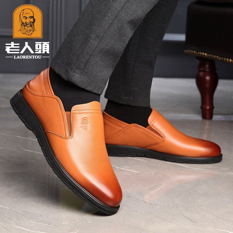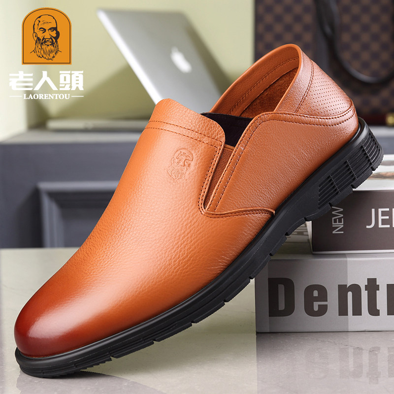 Old man head casual shoes men's business men's shoes new breathable soft bottom soft surface middle-aged and elderly father leather shoes men's leather