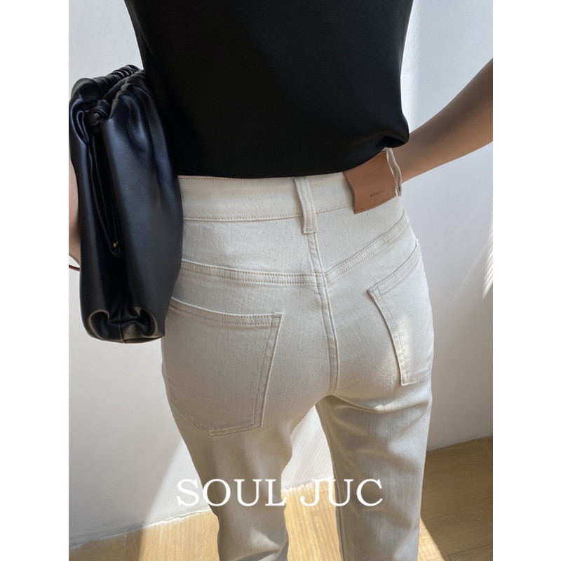 SOUL JUC straight leg high waist nine-point pants small straight elastic thin jeans