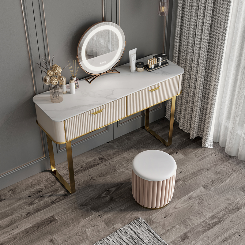 Bedroom light luxury makeup table Modern simple rock plate paint with mirror makeup table High-end small apartment net red ins wind