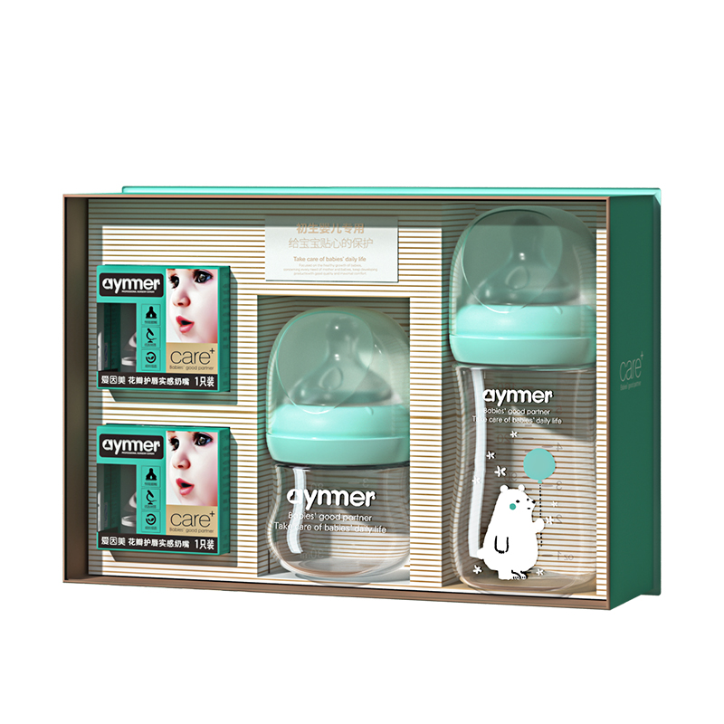 Ainmei newborn baby glass bottle wide caliber anti-choking anti-flatulence newborn baby gift box set