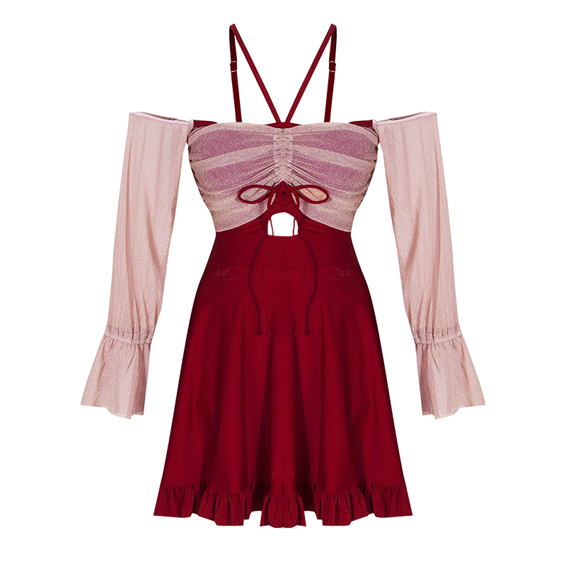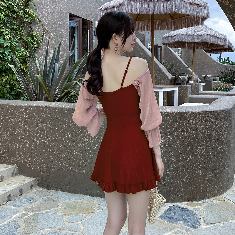 2021 new swimsuit women's summer conservative thin belly cover-up long-sleeved student Korea ins wind fairy fan one-piece skirt