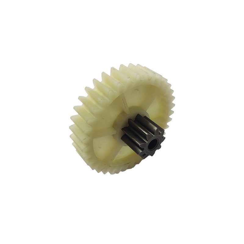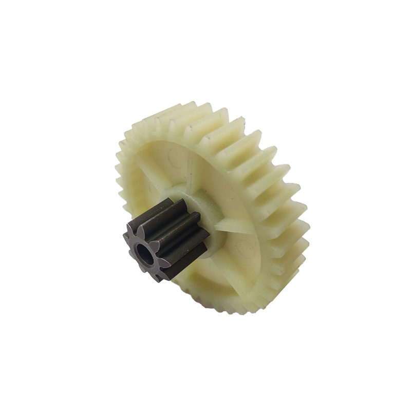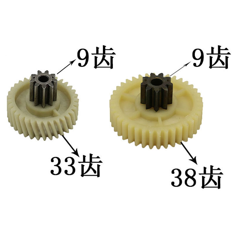 Gear A (9 teeth 33 teeth helical) Gear B (9 teeth 38 teeth straight) Iron gear C (38 teeth) Iron gear D (15 teeth) New gear A (8 teeth 32 teeth helical) New gear B (9