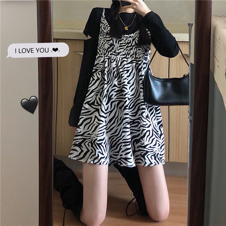 Sweet spicy wind sweet sa girl skirt spring 2021 new Korean version retro zebra pleated suspender dress female