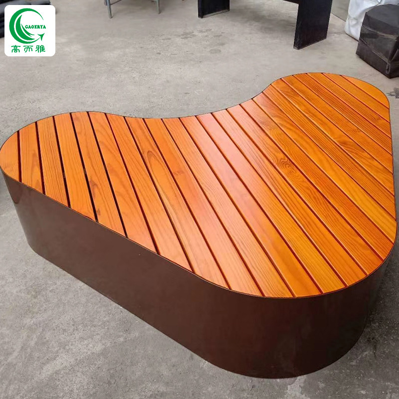 Custom Stainless Steel Landscape Park Outdoor Seat Creativity Rest Chairs Embalming Wood Bench Casual profiled bench