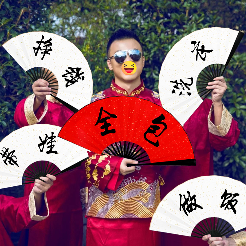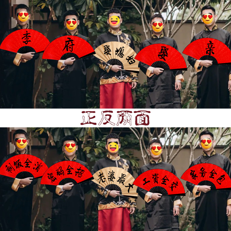 Transparent fan bridesmaid combination fan 6 begonia million years red fan Bridesmaid combination fan 4 round million years red fan Bridesmaid combination fan 4 Jin Juan million years red folding fan Groom best man combination fan 4