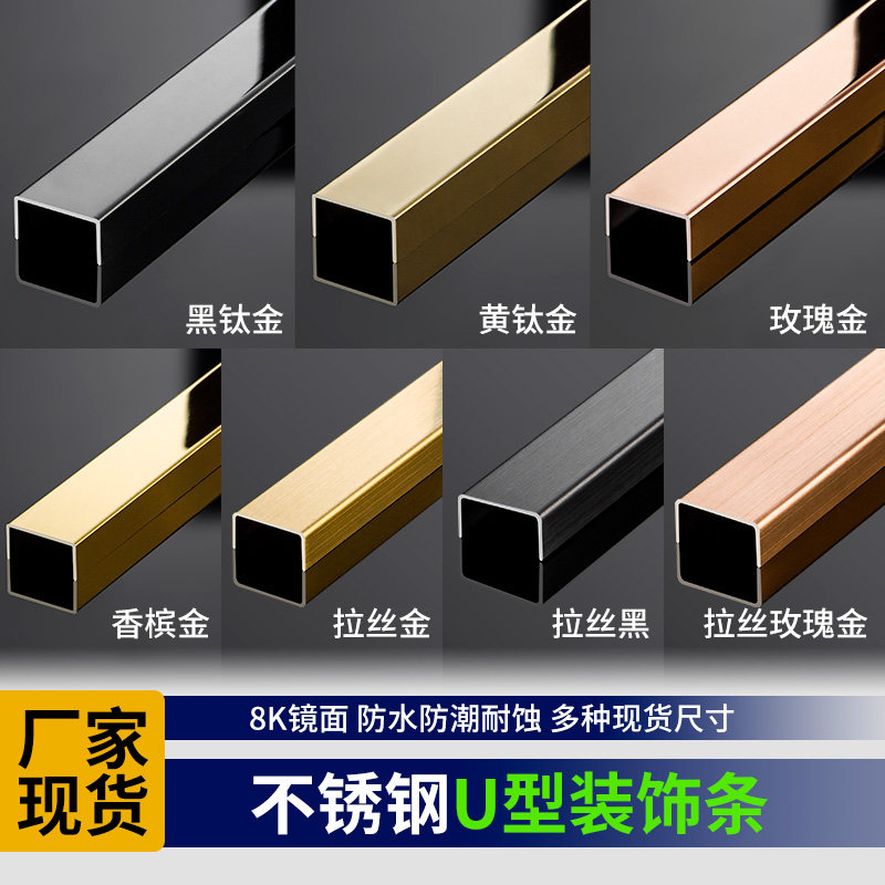 Black Titanium Alloy Stainless Steel Decorative Strips Titanium Alloy Wire Suspended Ceiling Background Wall Wrapping Close-up U Type Groove closing strip