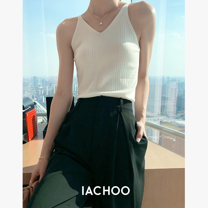 Iacoo 2020AW ultra-fine wool bottomed knitted camisole French elegant