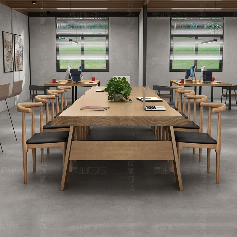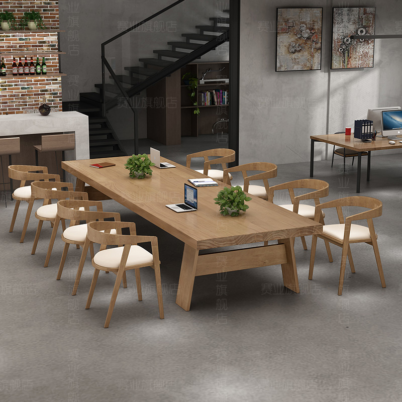 Industrial style solid wood conference table Nordic log long table long table negotiation training computer desk chair combination