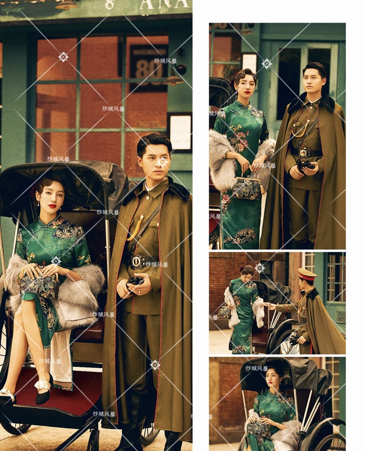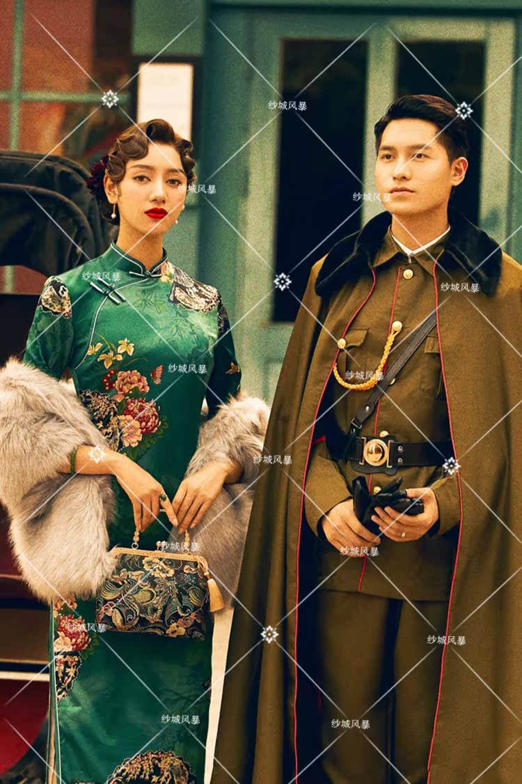 Photo studio theme wedding dress retro Republic of China warlord wife cheongsam military uniform couple photo wedding photo photography photography clothing
