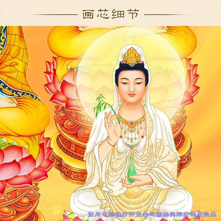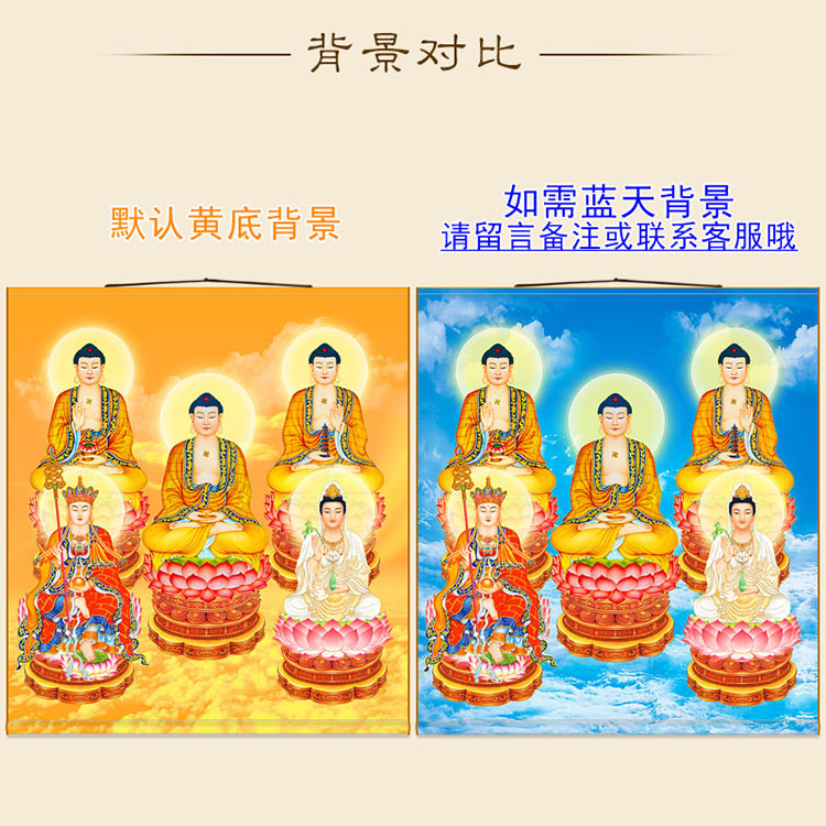 Tripartite Buddhas hide Wang Guanyin BodhisattBodhisattBodhisattva Sakyamuni Buddha's Buddhist Master Buddha The Buddha came to scroll to hang a silk painting