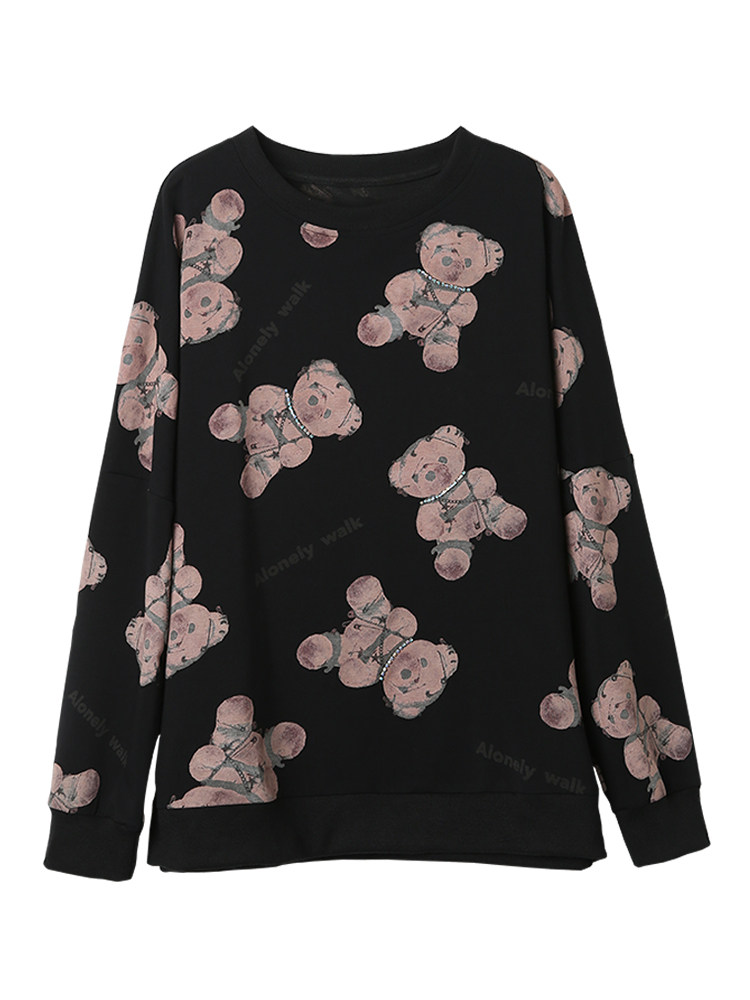 Clearance pick up leaked foreign trade original order 2020 autumn Korean version cartoon bear print beaded sweater shirt loose T-shirt
