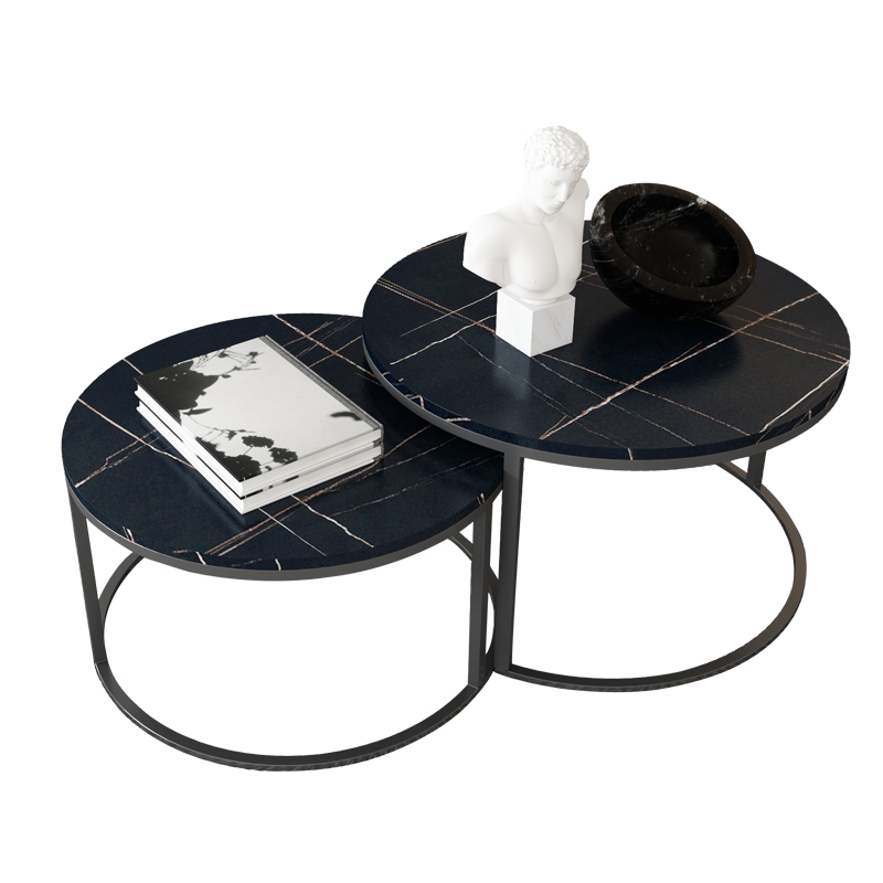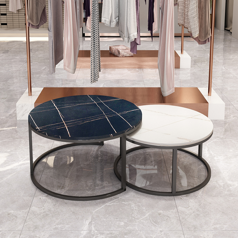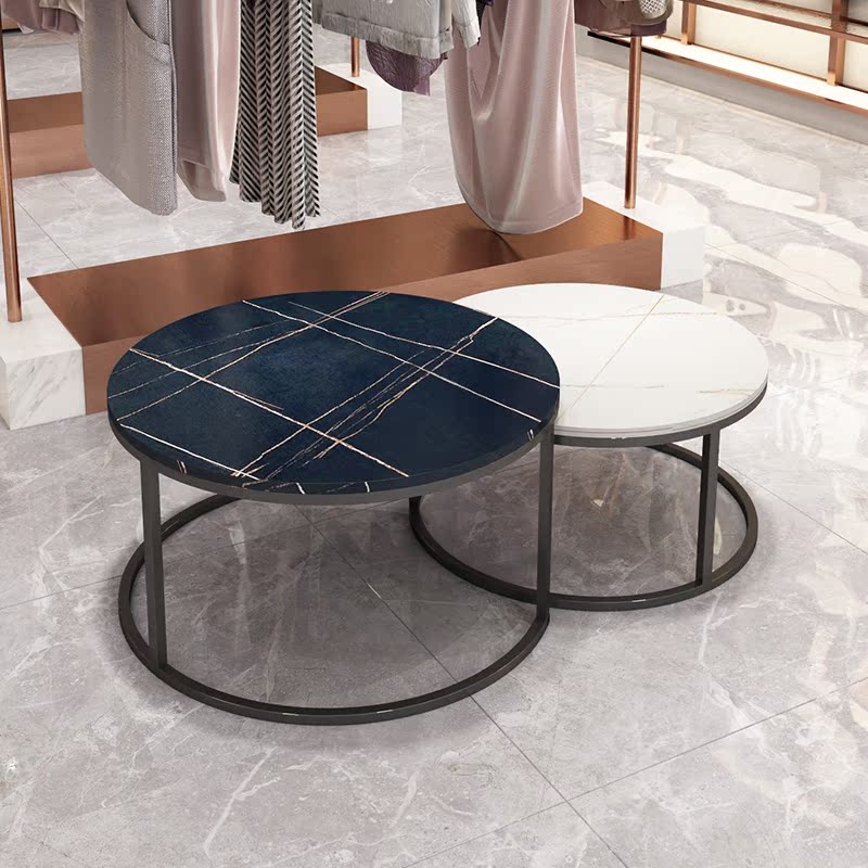 Light luxury rock plate coffee table round combination small apartment office coffee table table simple modern Nordic iron small coffee table