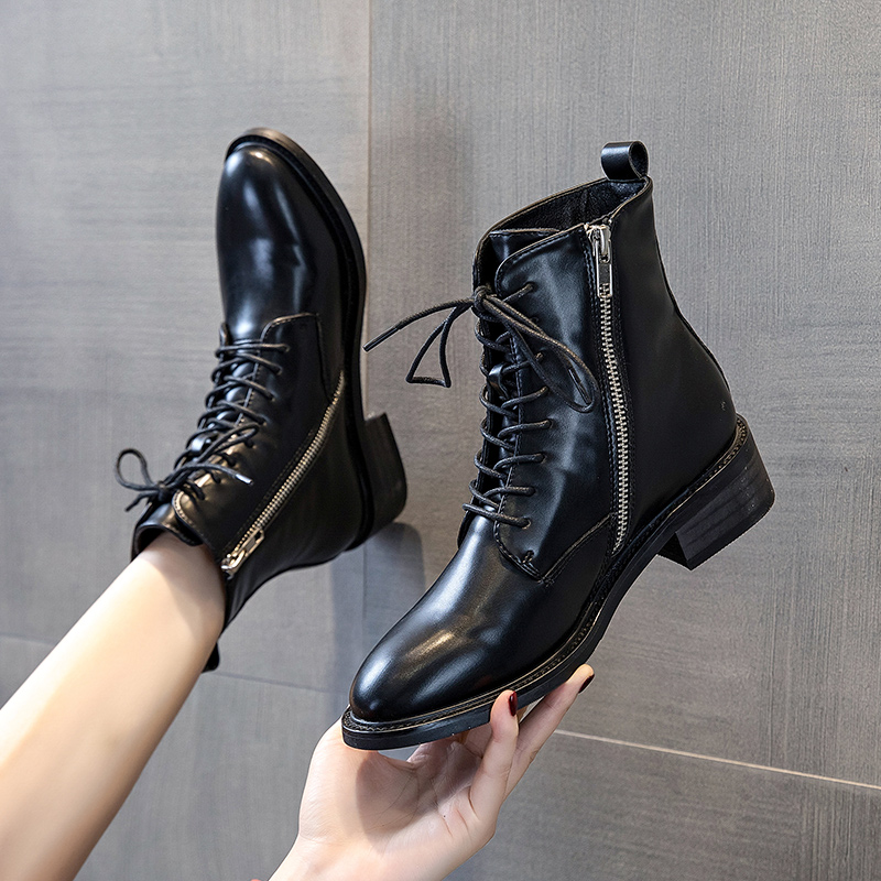 Lace-up Martin boots women's autumn and winter British style 2022 new single boot trendy ins thick heel medium heel short tube boots