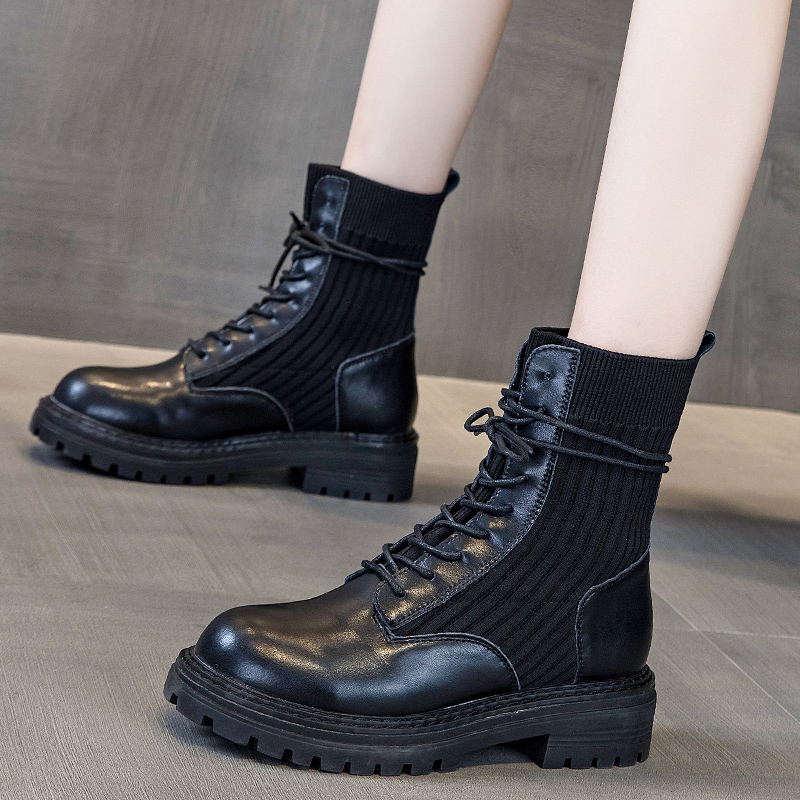 Leather Martin boots women's autumn and winter British style 2022 new single boots lace-up short tube with thick heel boots