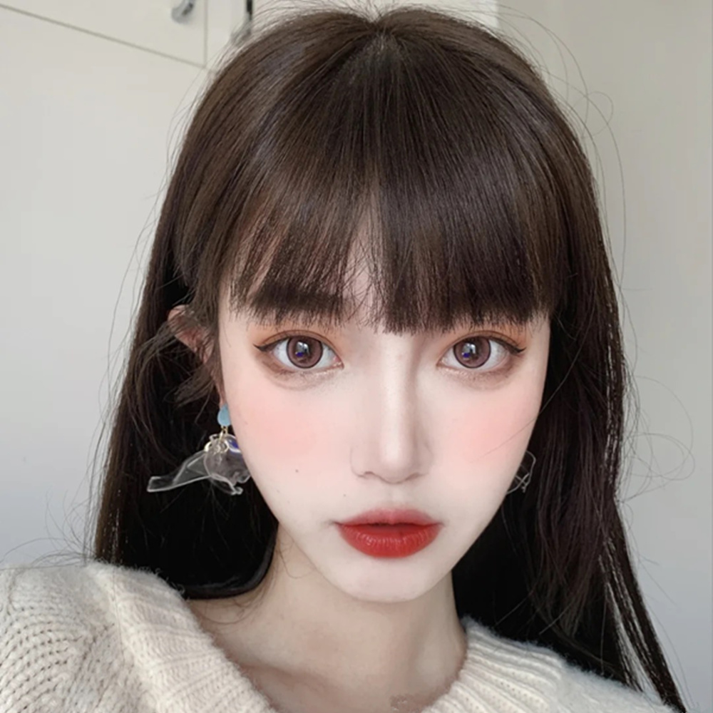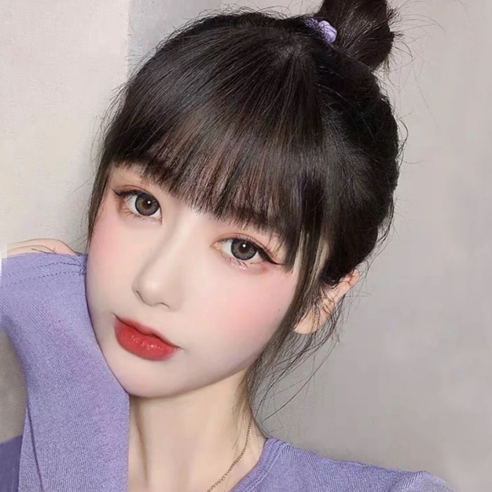 Lisa with the same cartoon bangs wig female natural invisible seamless Qi bangs Japanese round face Hepburn wig patch