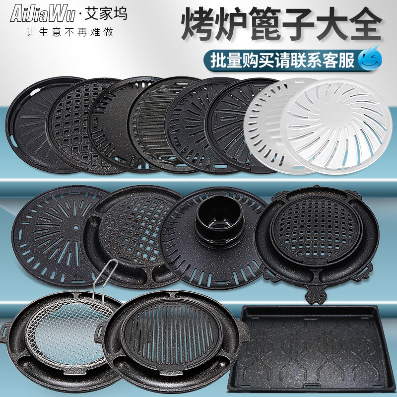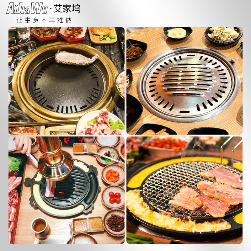 Korean style grilled pan commercial not stained with round medical stone grill pan carbon oven baking tray frying pan grilled meat shop grill grate