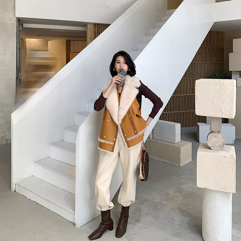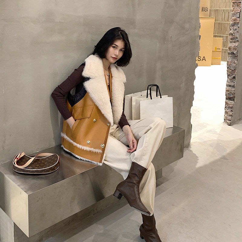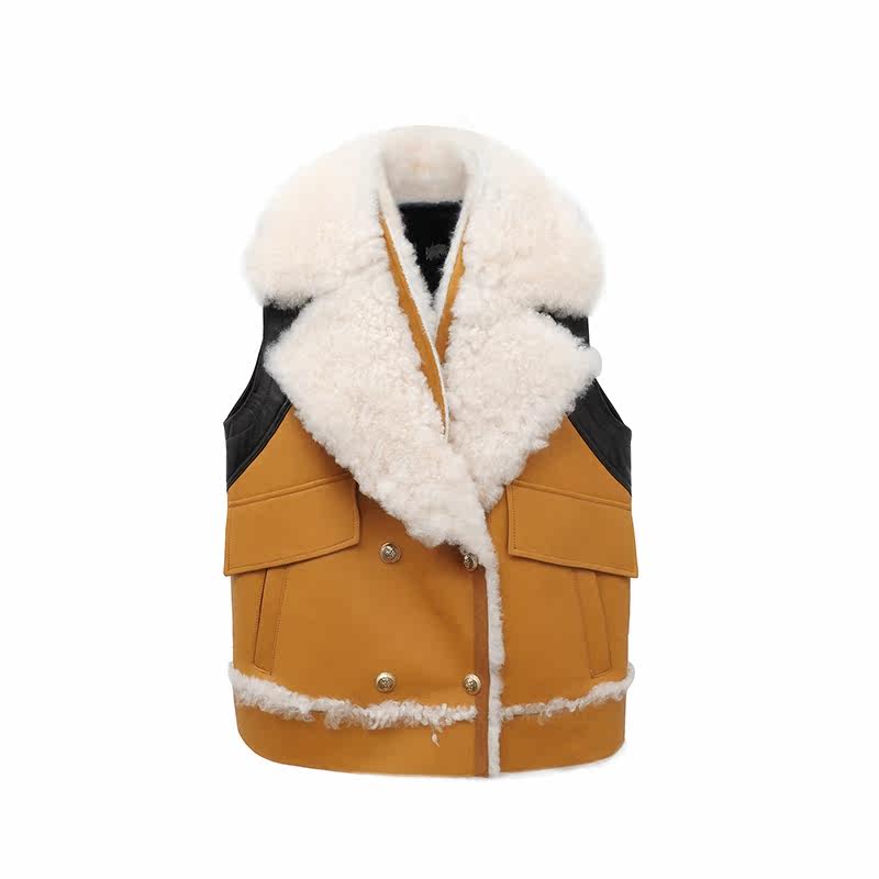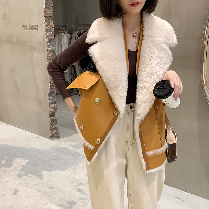 2022 new motorcycle tooling wind wool fur vest ladies slim fit all-match stitching design top coat