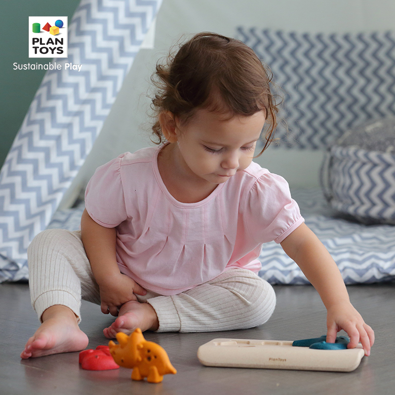 (Official direct sale)Imported plantoys4642 toy three-dimensional wooden puzzle dinosaur family wine boy